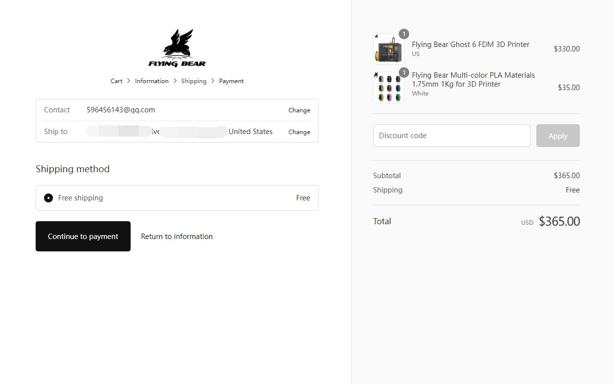 2. Enter the checkout page, you need to fill in your email and address information, and fill in the promo code if there is to enjoy the discount.