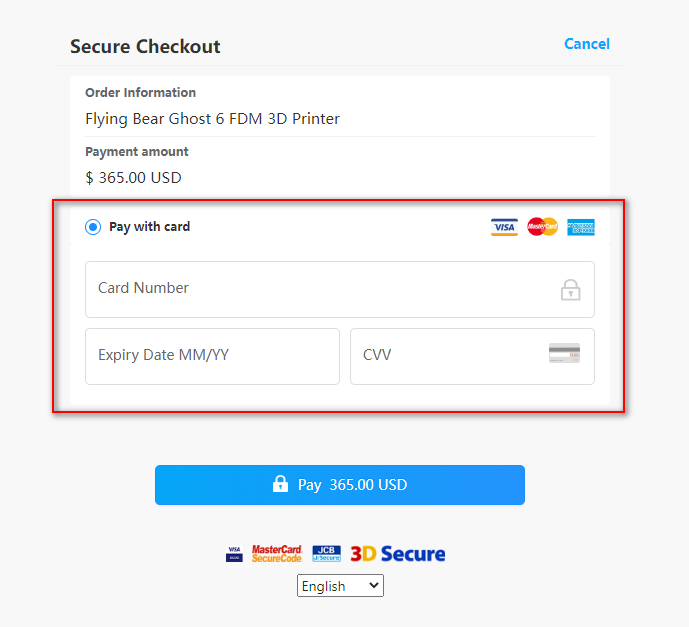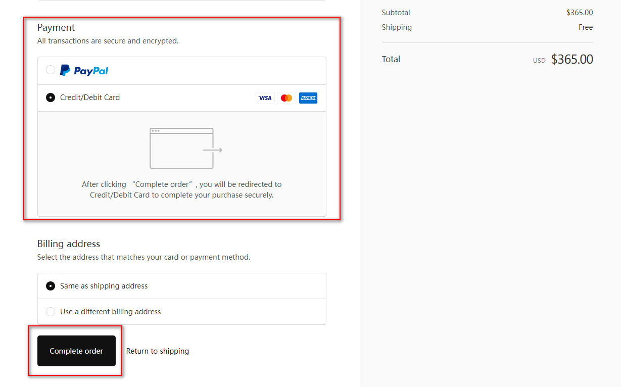 Please select your usual payment method. When you choose to pay by credit or debit card, please follow the instructions on the form to fill in your card information and finalize the payment. Once the payment is completed, the order is complete and we will receive your order immediately and ship it to you as soon as possible.